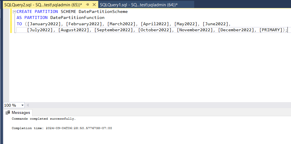 Here because I haven't had any database to be used for partitioning, I created a new Database called TestPartitioning.